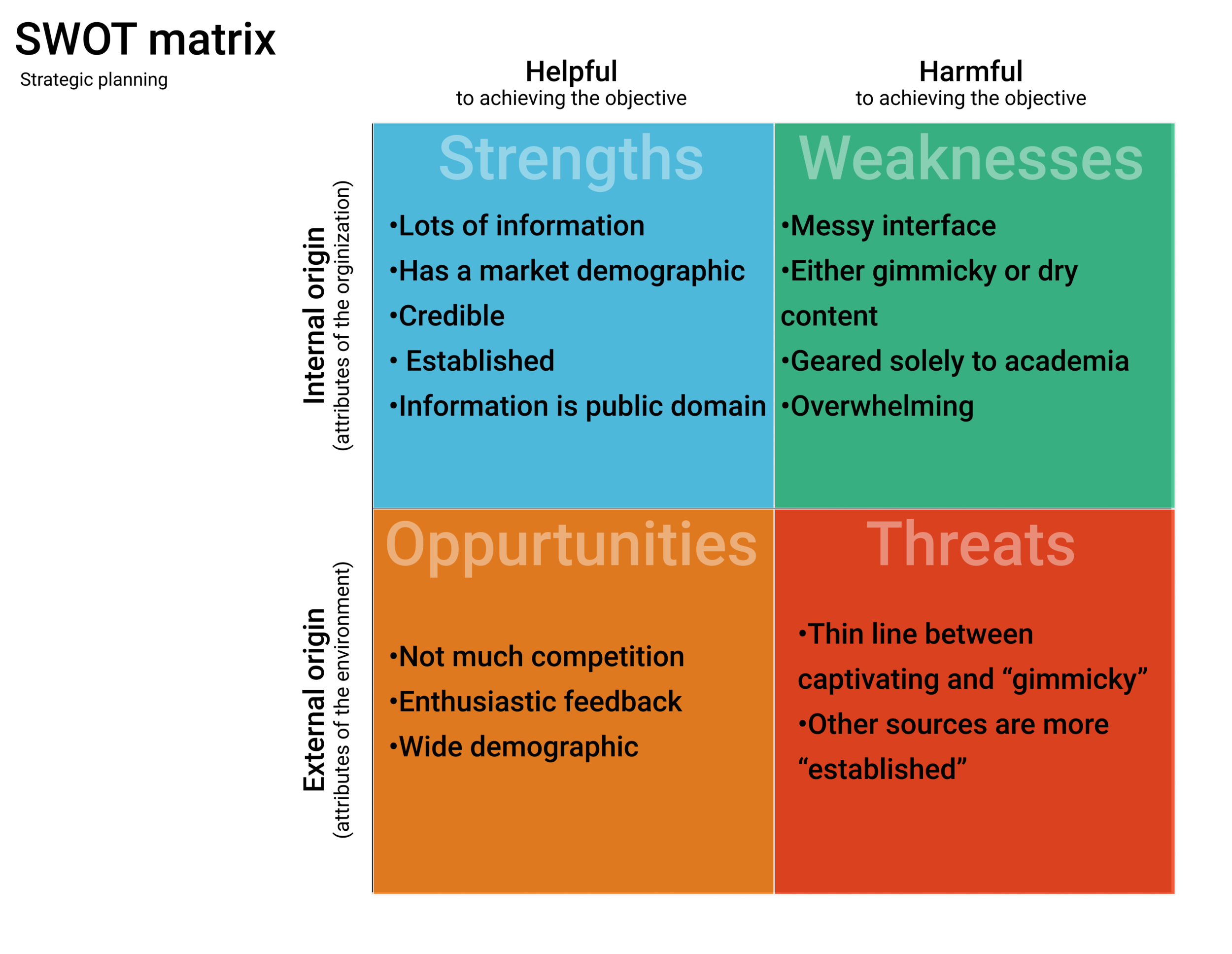 “Strength • Weakness • Opportunity • Threats” Analysis Chart