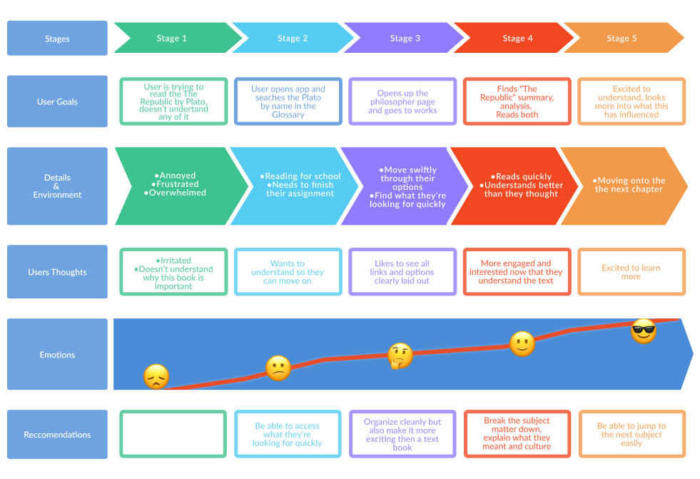 I also map out the users emotions to understand how the user may feel at each point of the journey
