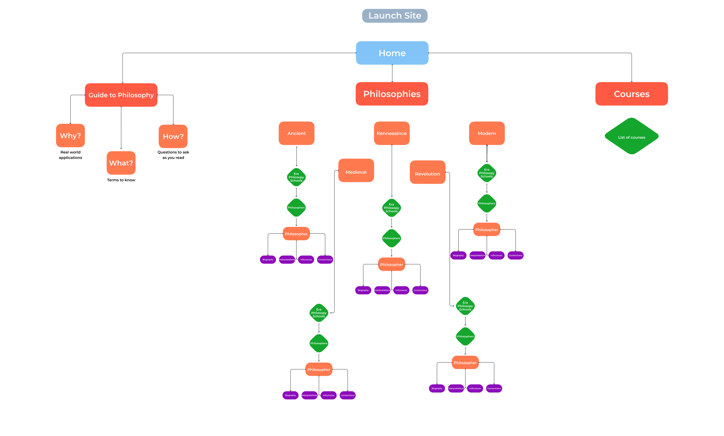 I’m a fan of putting together my content based off user flows, but since my goal was such a big interactive map I thought for this project it would be smart to put together a site map.