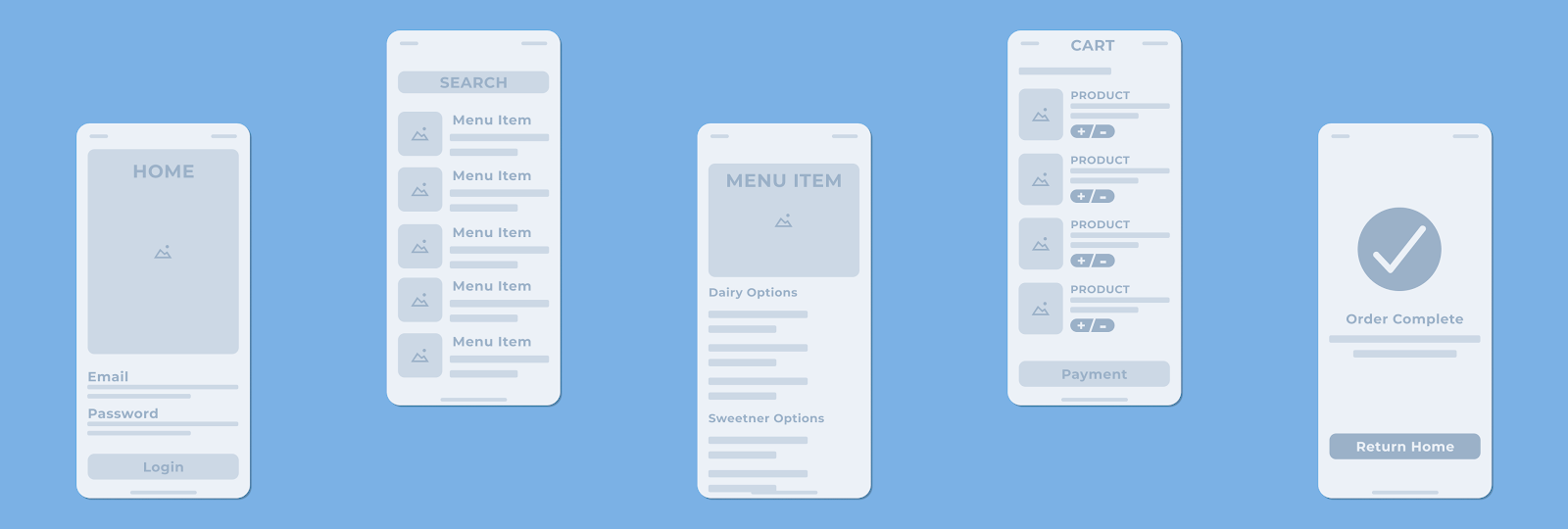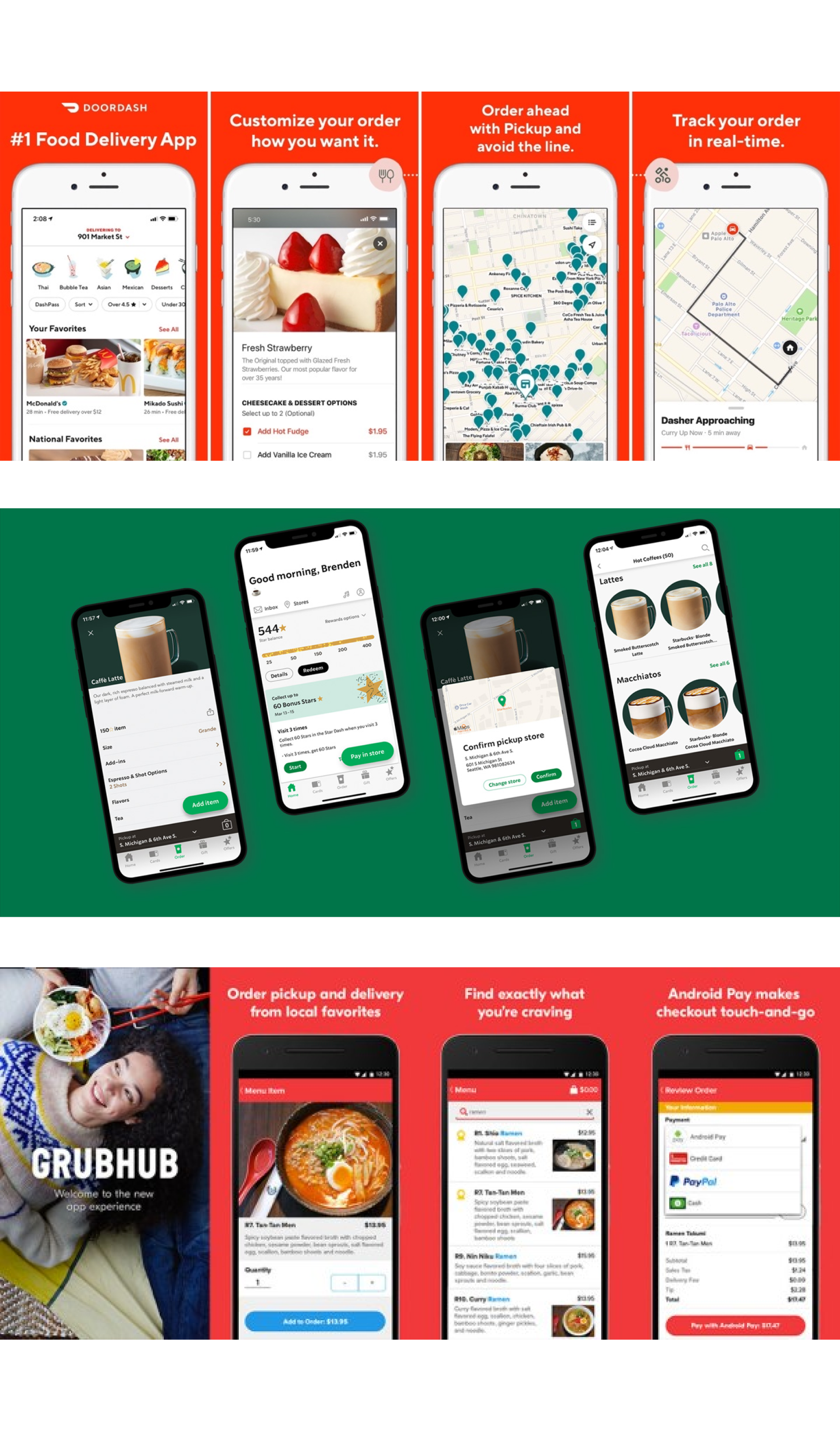 My competitive analysis involved assessing how the competition has designed their websites to solve for similar experiences. I researched other food and coffee companies (Starbucks, Doordash, and Grubhub) focusing on their purchasing flow and the visual hierarchy of the user interface.