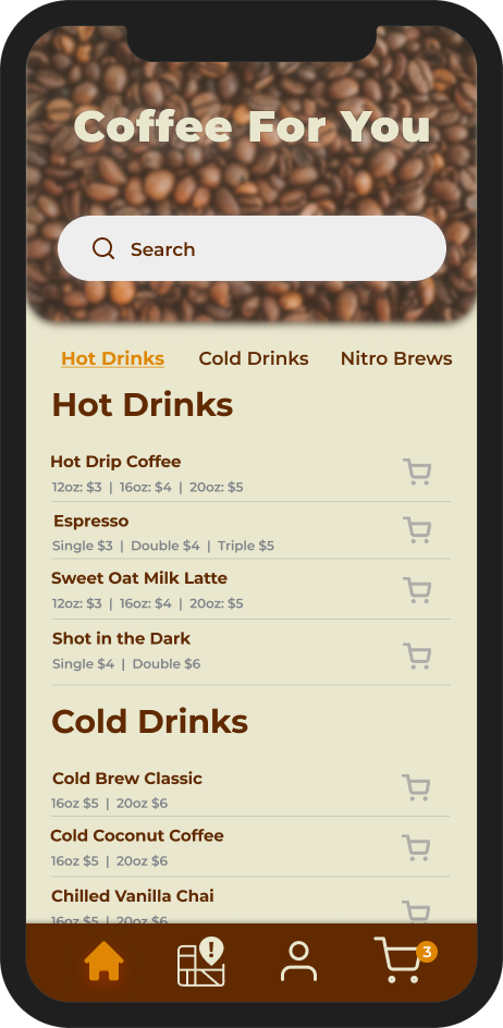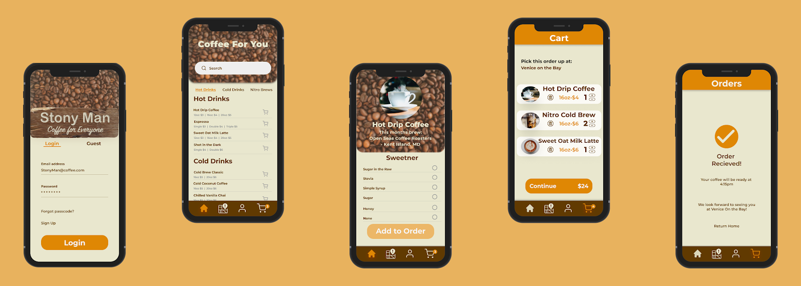 Brief: Design an application for Stony Man Coffee customers to order their drinks, and find the Stony Man Coffee locations